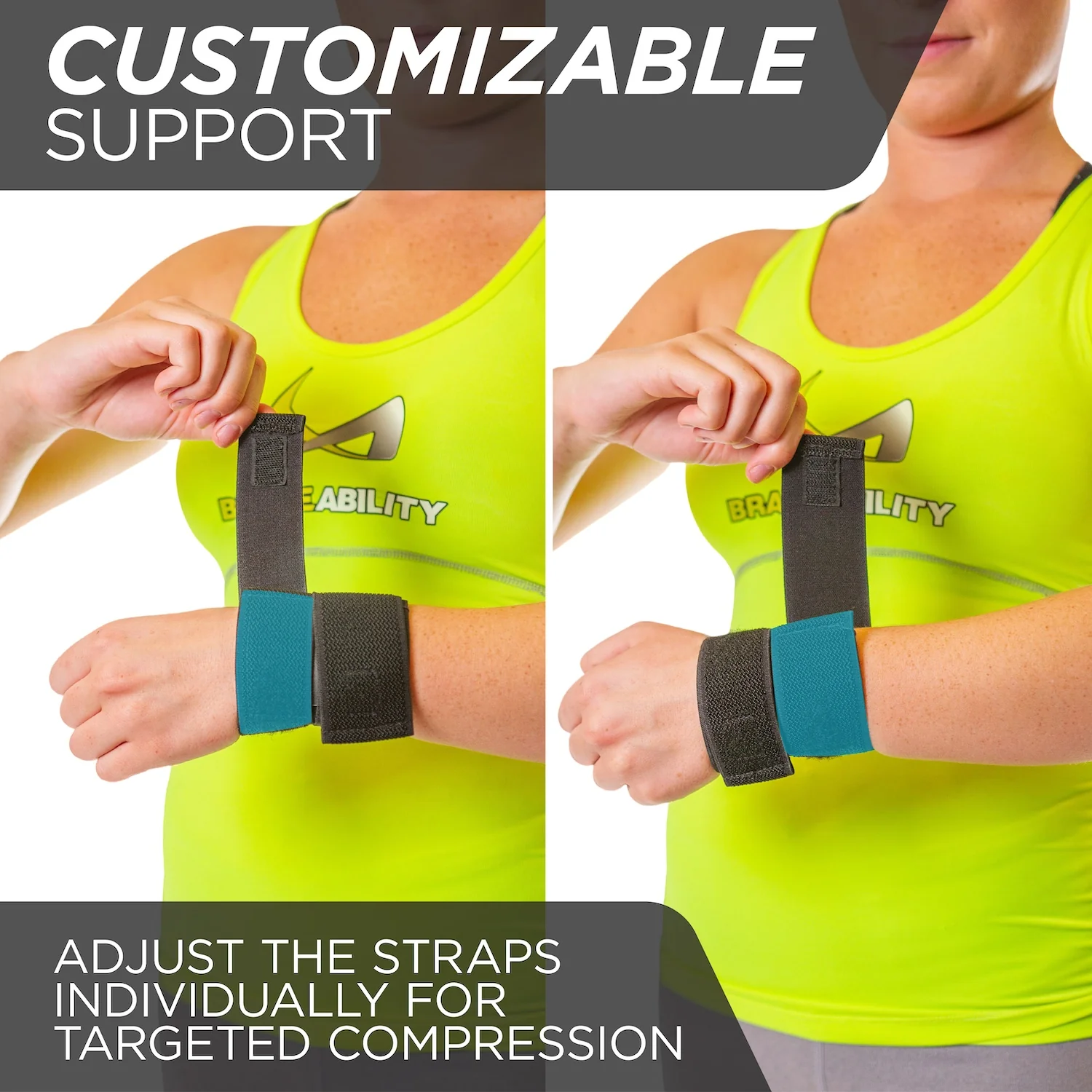 2 adjustable elastic wrist straps provide customizable, dual compression. These braces are meant to fit snug to stabilize your wrist properly and can be quickly adjusted throughout the day.