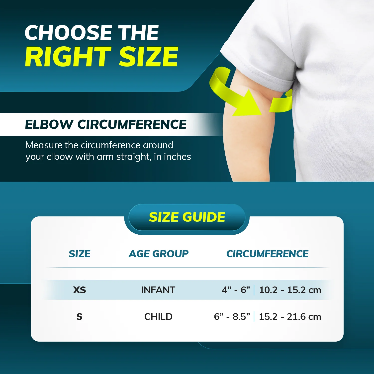 **Please note that the XS of this elbow stabilizer is very small and designed for infants. A toddler or young child will need the size Small.