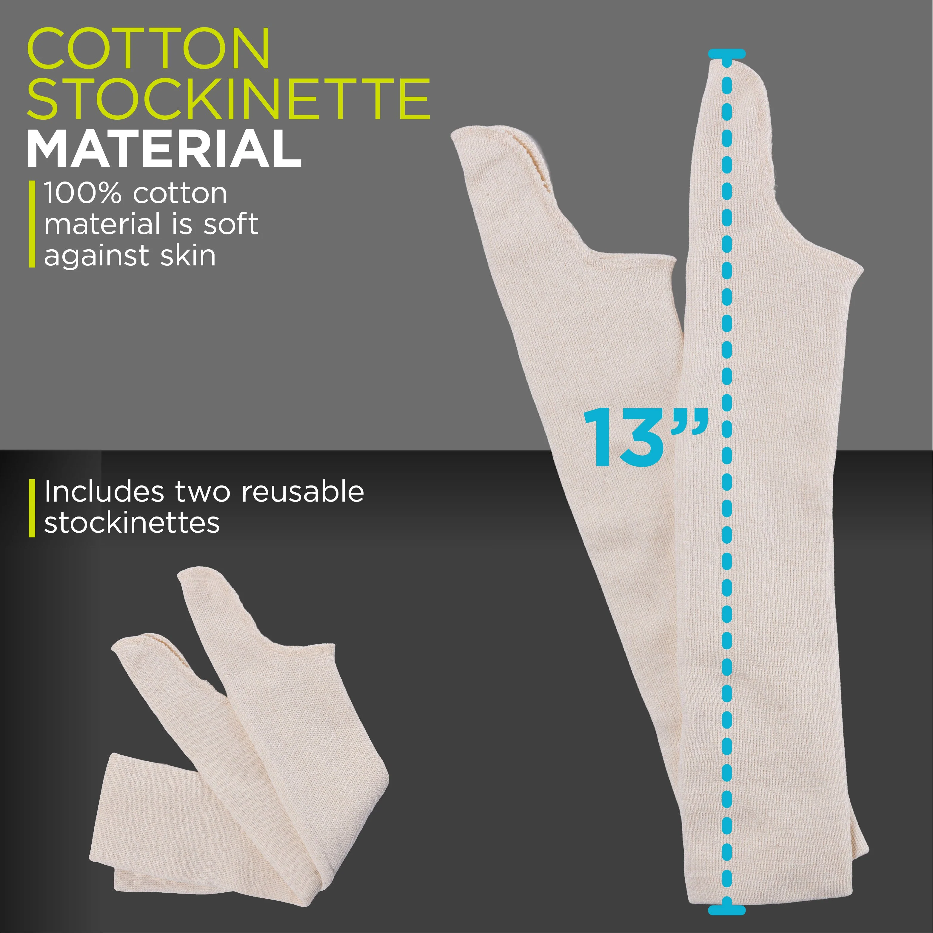 - What size should I get? Universal in sizing, this stockinette fits right or left arms, as well as women and men of all shapes and sizes, including many children.